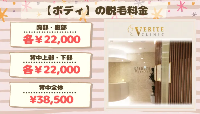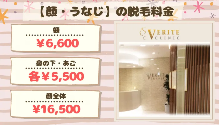 続いて、『ヴェリテクリニック名古屋院』の脱毛料金を確認していきましょう。