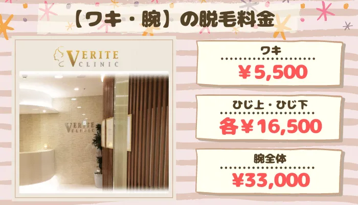 続いて、ワキ・腕の脱毛料金を紹介します。