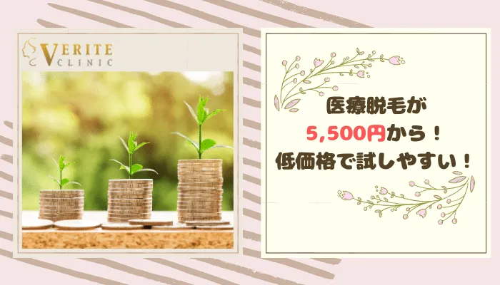 ヴェリテクリニック名古屋院』では、わずか[affi id=471]から脱毛を始められます。
