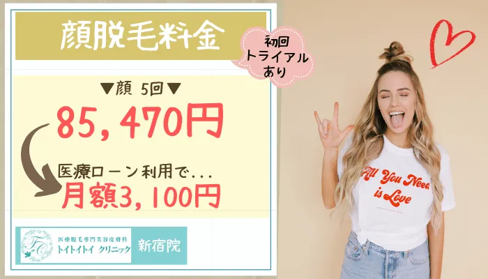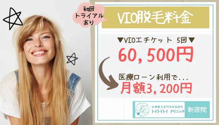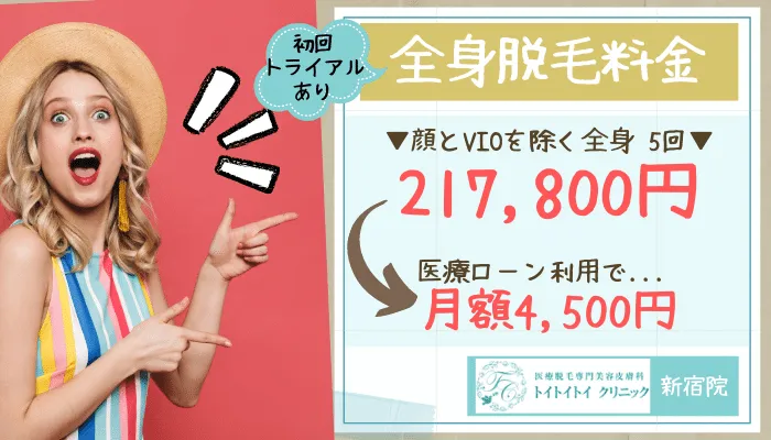 トイトイトイクリニック新宿院の脱毛料金&お試し脱毛料金