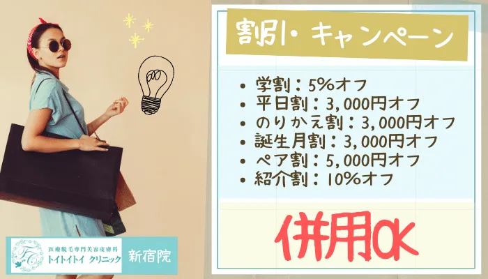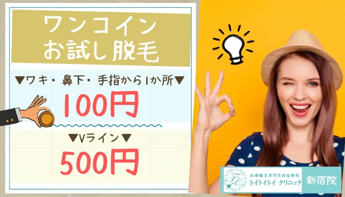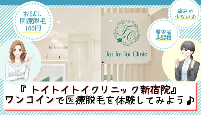 トイトイトイクリニック新宿院は、ワンコインでお試し脱毛ができる医療脱毛クリニックです。