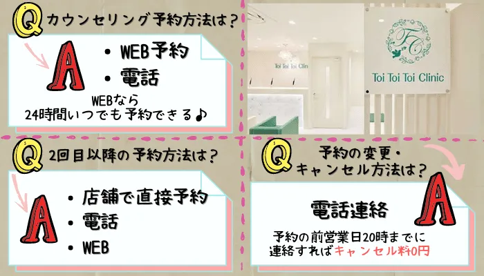 続いて、トイトイトイクリニック新宿院の予約方法と予約の変更、キャンセル方法について紹介します。