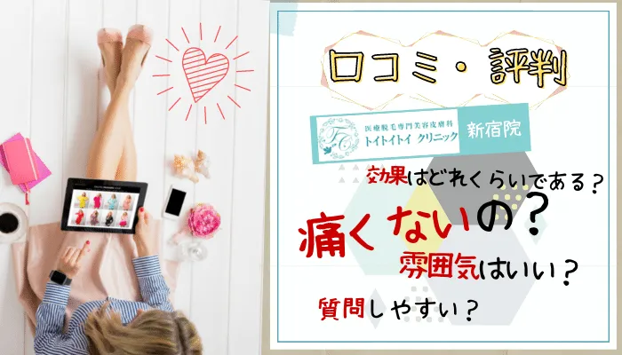 「新宿で脱毛したい。トイトイトイクリニックが近くにあるみたいだけど、評判は良いの?」