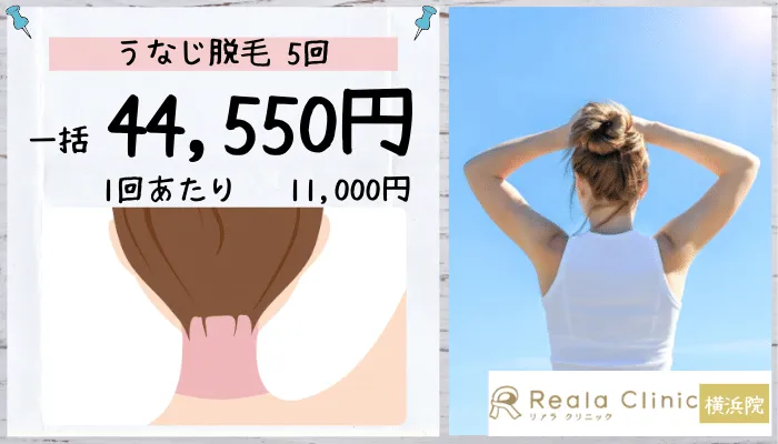 続いて、リアラクリニック横浜院のうなじ脱毛料金を紹介します。