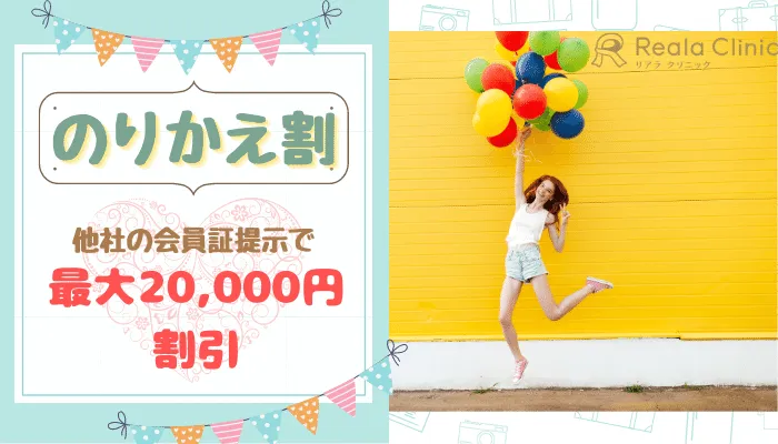 紹介された方が、リアラクリニックでカウンセリングを受けたことがあった場合やのりかえ割や学割などを利用する場合対象外となりますので、ご注意ください。