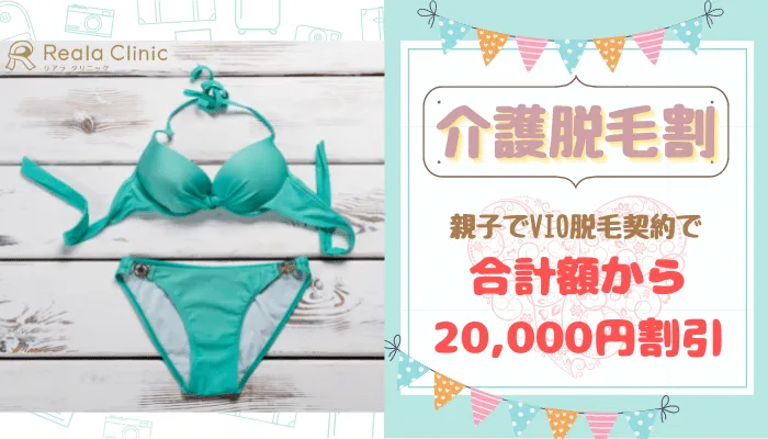 「介護脱毛割」は親子でVIO脱毛5回を契約した場合、合計金額から20,000円の割引が受けられます。