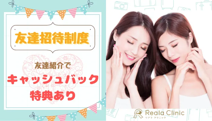 「友達招待制度」は、友人や知人などからリアラクリニックを紹介され、初めてカウンセリング&契約する場合に、通常よりもお手頃な価格で契約できる制度です。