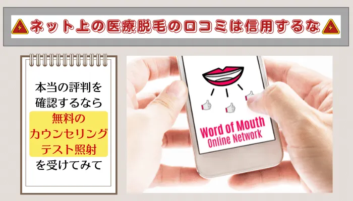 ネット上で医療脱毛の口コミを検索すると、さまざまな内容を見ることができますが、口コミの内容は信用してはいけません。