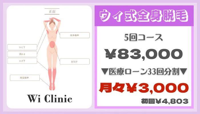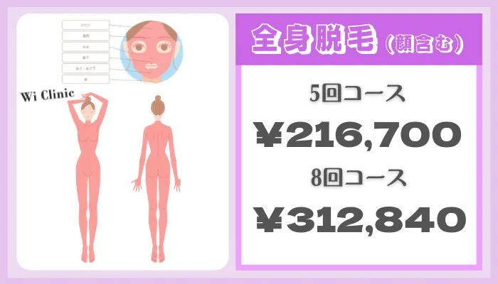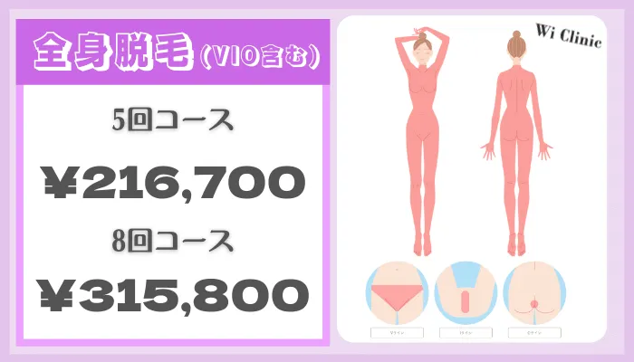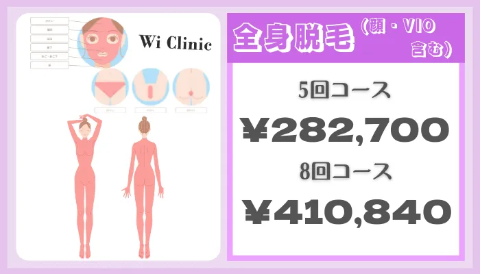 続いて、ウィクリニックの全身脱毛料金を紹介します。