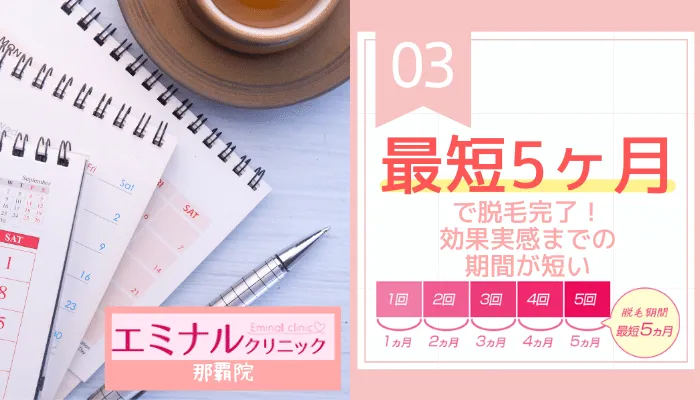 エミナルクリニックは、最短1ヶ月に1回のペースで脱毛施術を受けられます。