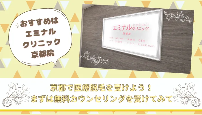全身脱毛・VIO脱毛を受けたい方は、脱毛料金が安い・複数のレーザーで最適な施術を受けられる『エミナルクリニック京都院をチェックしてみてくださいね。
