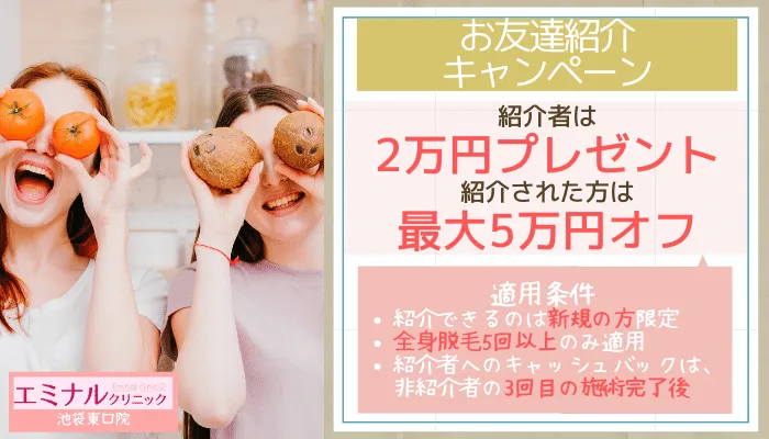 エミナルクリニック池袋東口院では、期間限定でVIO脱毛を無料で受けられるため、VIOを含む全身脱毛をお得に受けられます。
