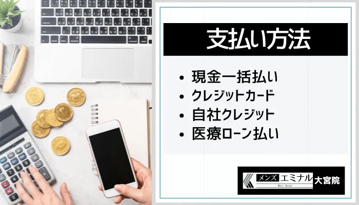 エミナルクリニックメンズ大宮院で利用できる支払い方法は下記の4つだ。