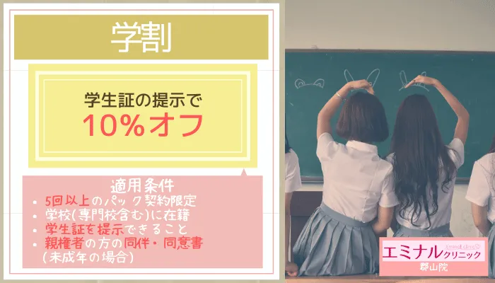 エミナルクリニックの8回・10回・12回コース料金は5回コース1回あたりの料金を基準に算出しています。