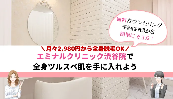 結論からお伝えすると、渋谷で安い料金で、全身脱毛をするならエミナルクリニック渋谷院がおすすめです。