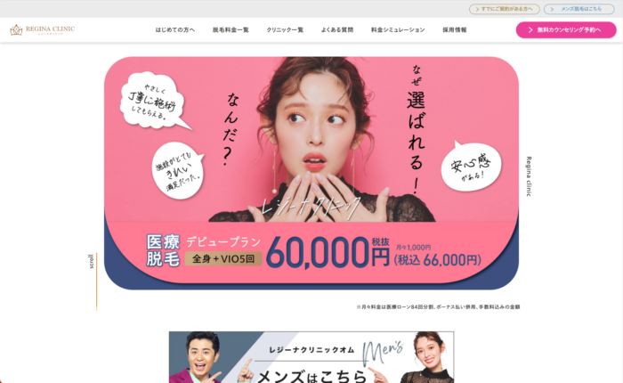 エミナルクリニックの医療ローンは最大60回まで可能で、月々1,000円(税込)から支払い可能となっています。