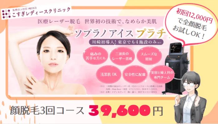 こすぎレディースクリニック:顔脱毛3回コースが安い