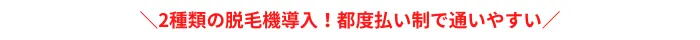 YAGレーザー蓄熱式ダイオードレーザーを搭載した複数の脱毛機を導入しており、さまざまな肌質・毛質に対応できるのが魅力です。