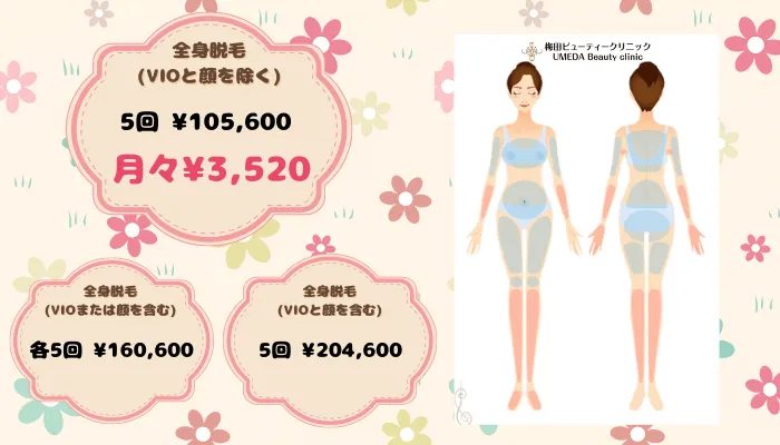 グローバルビューティークリニック大阪院の脇脱毛料金