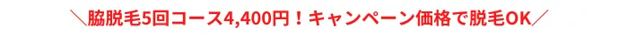 脇脱毛は、通常5回コースで5,500円ですが、現在キャンペーン価格の4,400円で脱毛可能です。