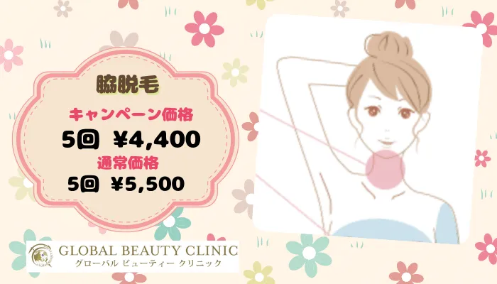 グローバルビューティークリニック大阪院の脇脱毛料金を見ていきましょう。