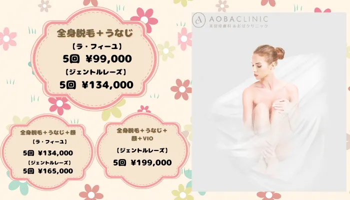 あおばクリニックロゴ パーツ脱毛初回1,800円 対象パーツから1箇所選んで初回1,800円で体験OK