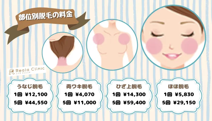 『リアラクリニック栄院』では、部位ごとにも脱毛料金が設定されています。