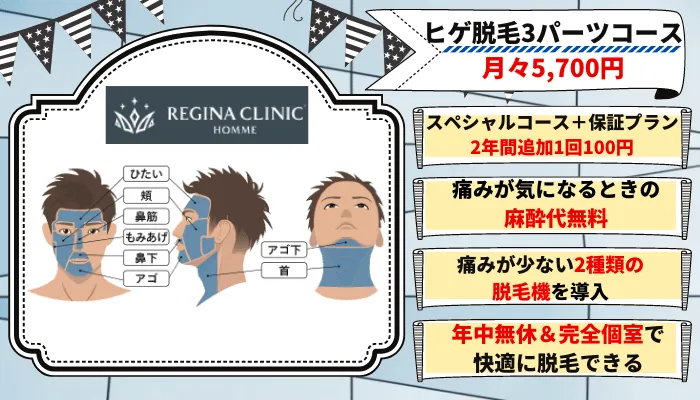 レジーナクリニックオム渋谷院:ヒゲ脱毛2年間追加1回[affi id=2644]!麻酔の無料使用OK