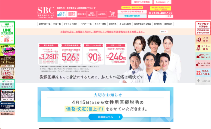 | クリニック名 | 湘南美容クリニック | リアラクリニック | ルシアクリニック | フレイアクリニック |