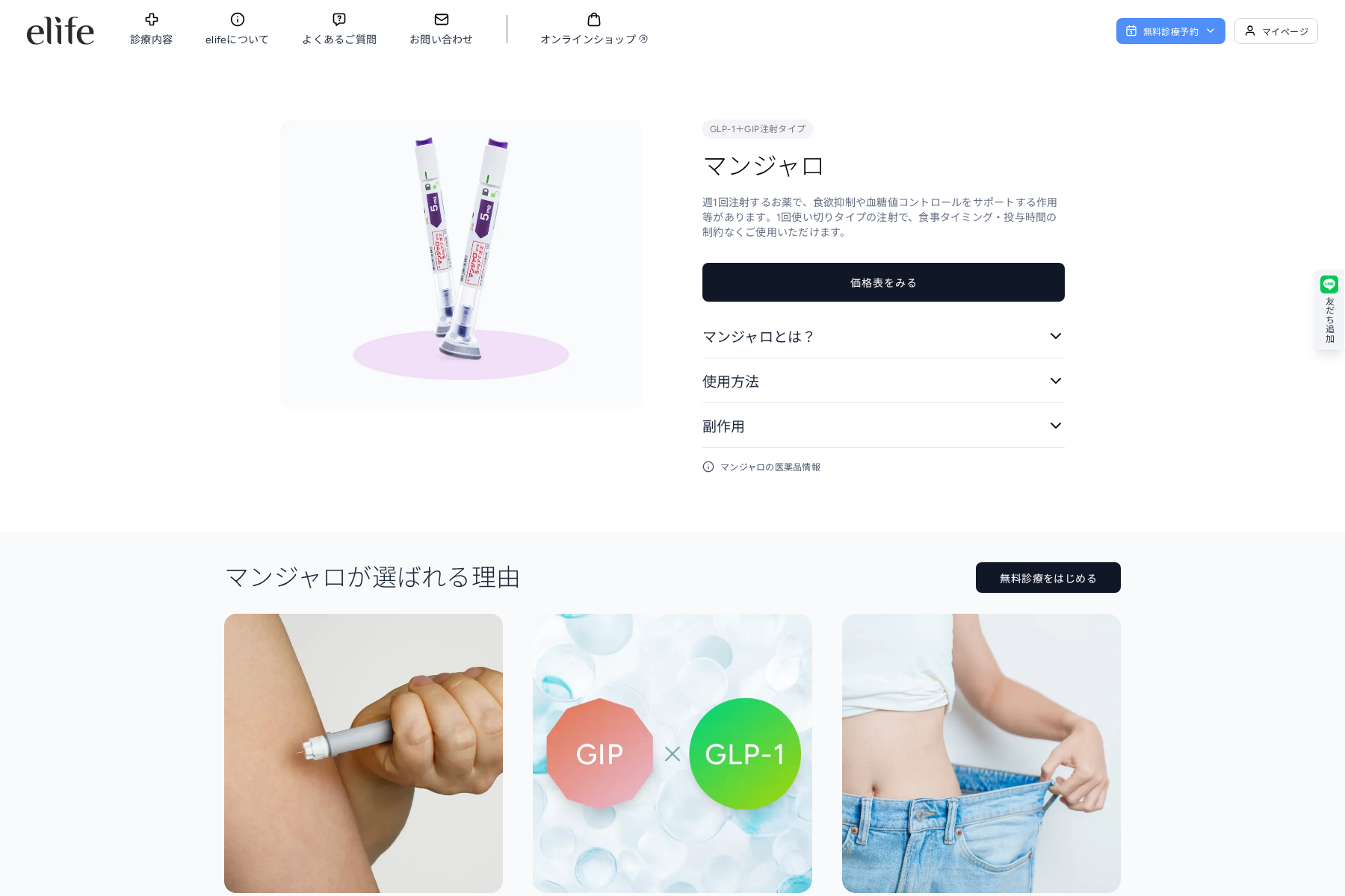 | GLP-1注射薬プラン(マンジャロ2.5mg) | 週1回注射(定期配送) | 27,115円〜 / 月 |