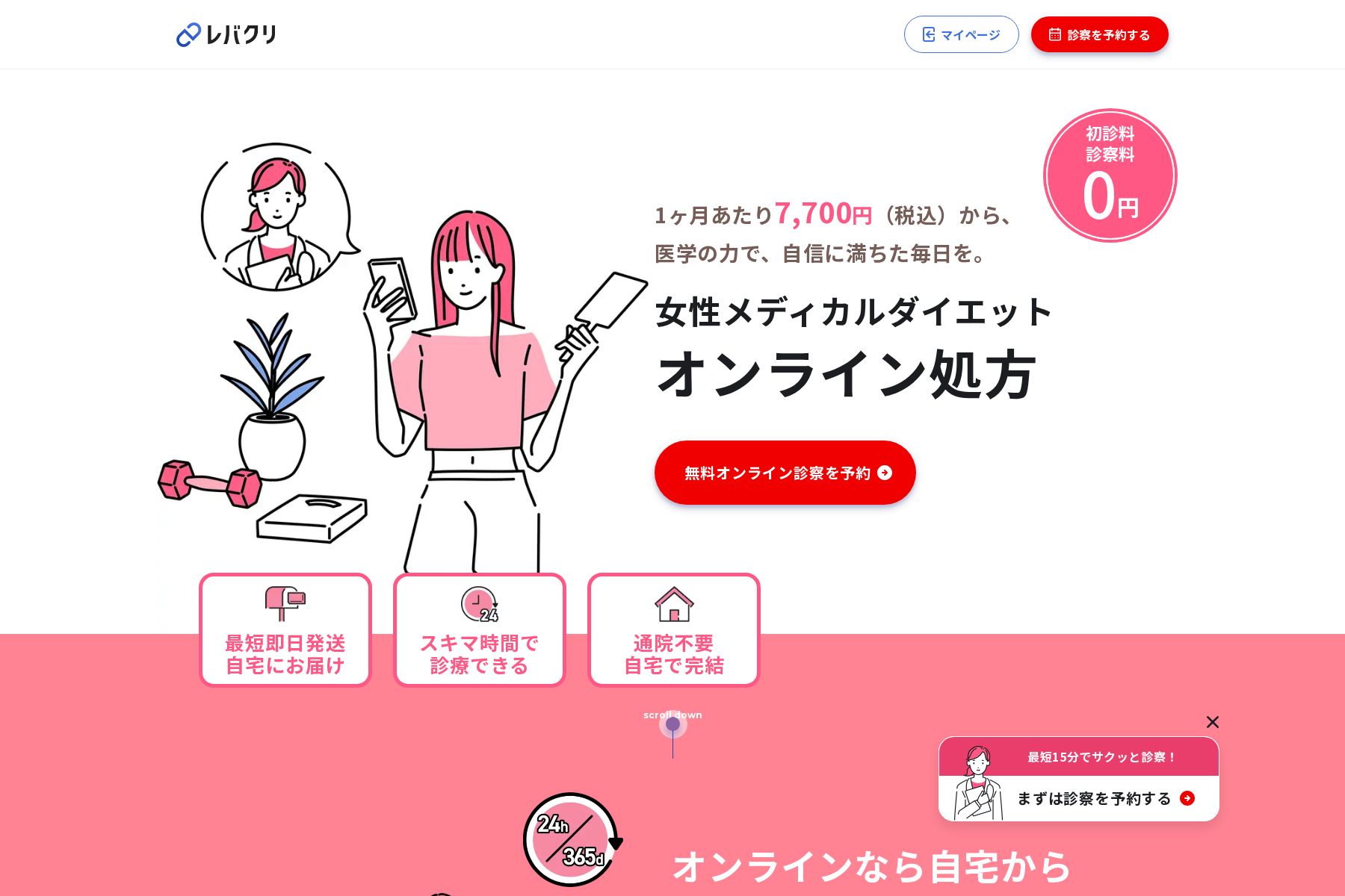 診察料0円 定期縛りなし 最短15分で診察完了 |