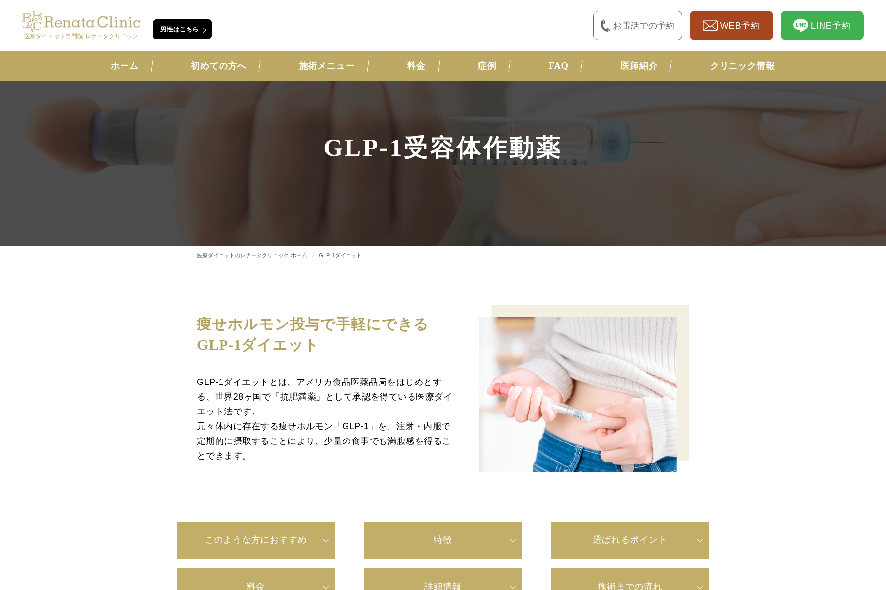 | 施術タイプ | GLP-1注射・内服薬 | GLP-1注射 | GLP-1注射 | GLP-1注射 | GLP-1注射 | GLP-1注射 | GLP-1注射 | GLP-1注射 | GLP-1注射 | GLP-1注射 |