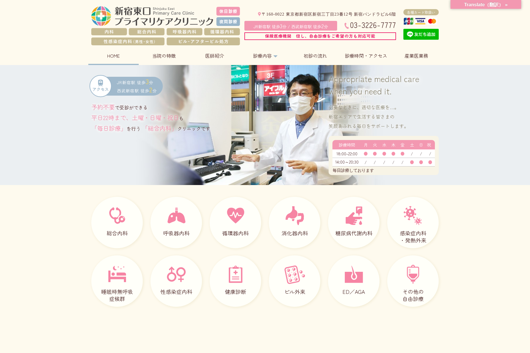 • 夜間22時まで診療: 平日は夜22時まで診療を行っており、仕事帰りや会食の後でも立ち寄りやすい診療体制です。