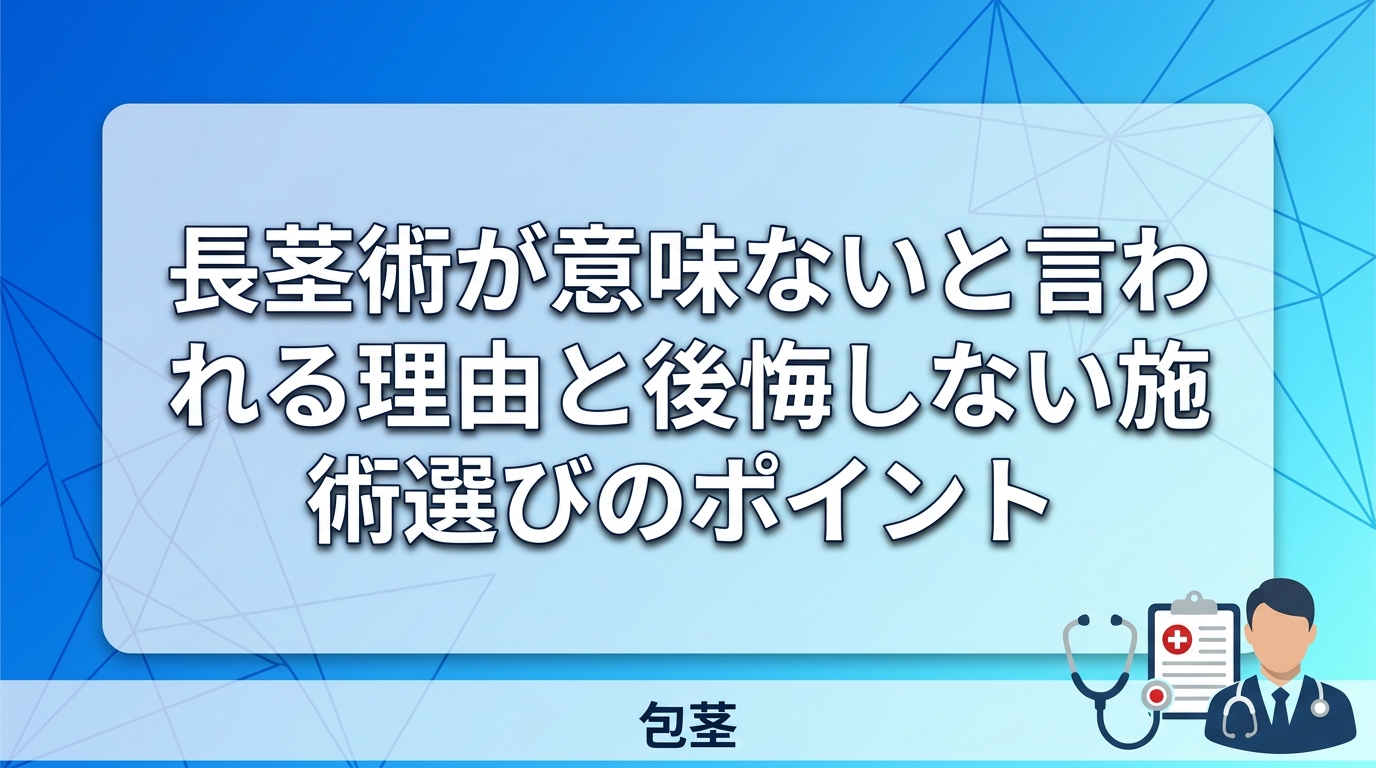 本記事では、長茎術が「意味ない」と評価される理由、実際の効果の現れ方、そして後悔しないための施術選びについて、医学的根拠と実際の利用者の声に基づいて解説します。長茎術の検討を考えている方は、ぜひ参考にしてください。