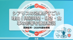 一方、ED治療薬(バイアグラ・レビトラ・シアリスなど)は医療用医薬品で、医師の処方が必要です。血管に直接働きかけて一時的に血流を増加させるため、即効性(最短15分~1時間)が特徴です。